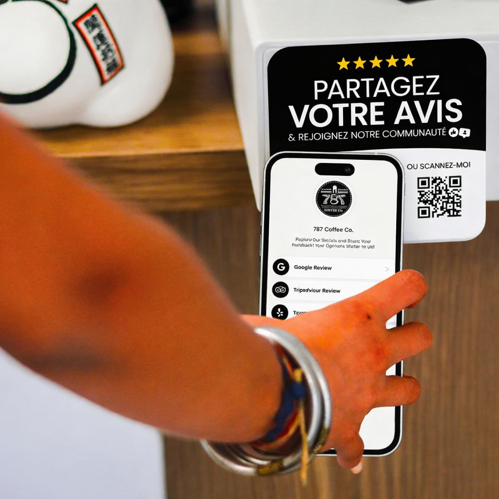 Redirigez vos clients vers vos pages d’avis, vos réseaux sociaux ou tout autre lien de votre choix grâce à la plaque multi-liens.